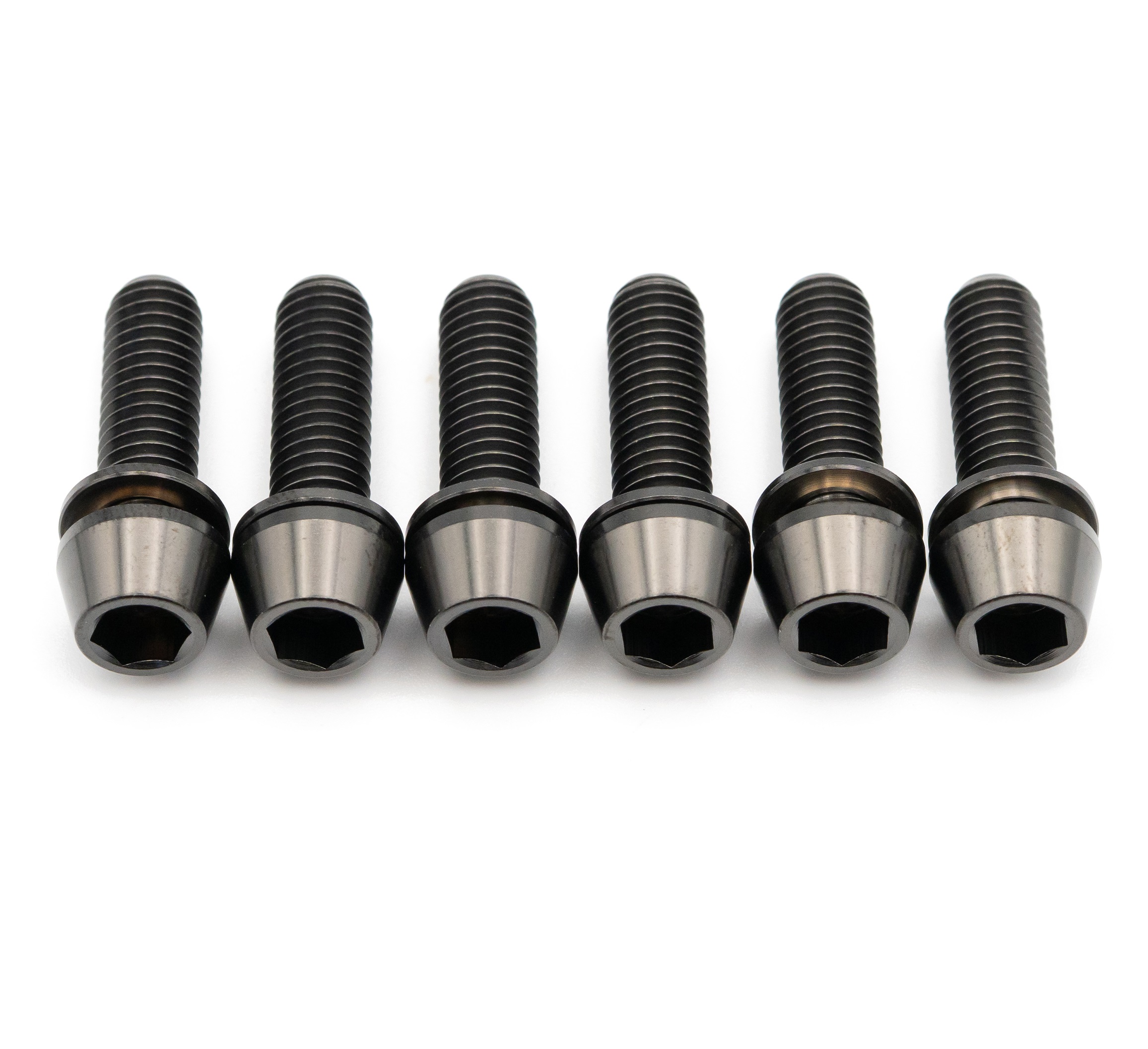 6 Stk. Better Bolts Titan Raceface Turbine R Vorbau Schraube mit gesicherter Unterlegscheibe M5 x 17mm black