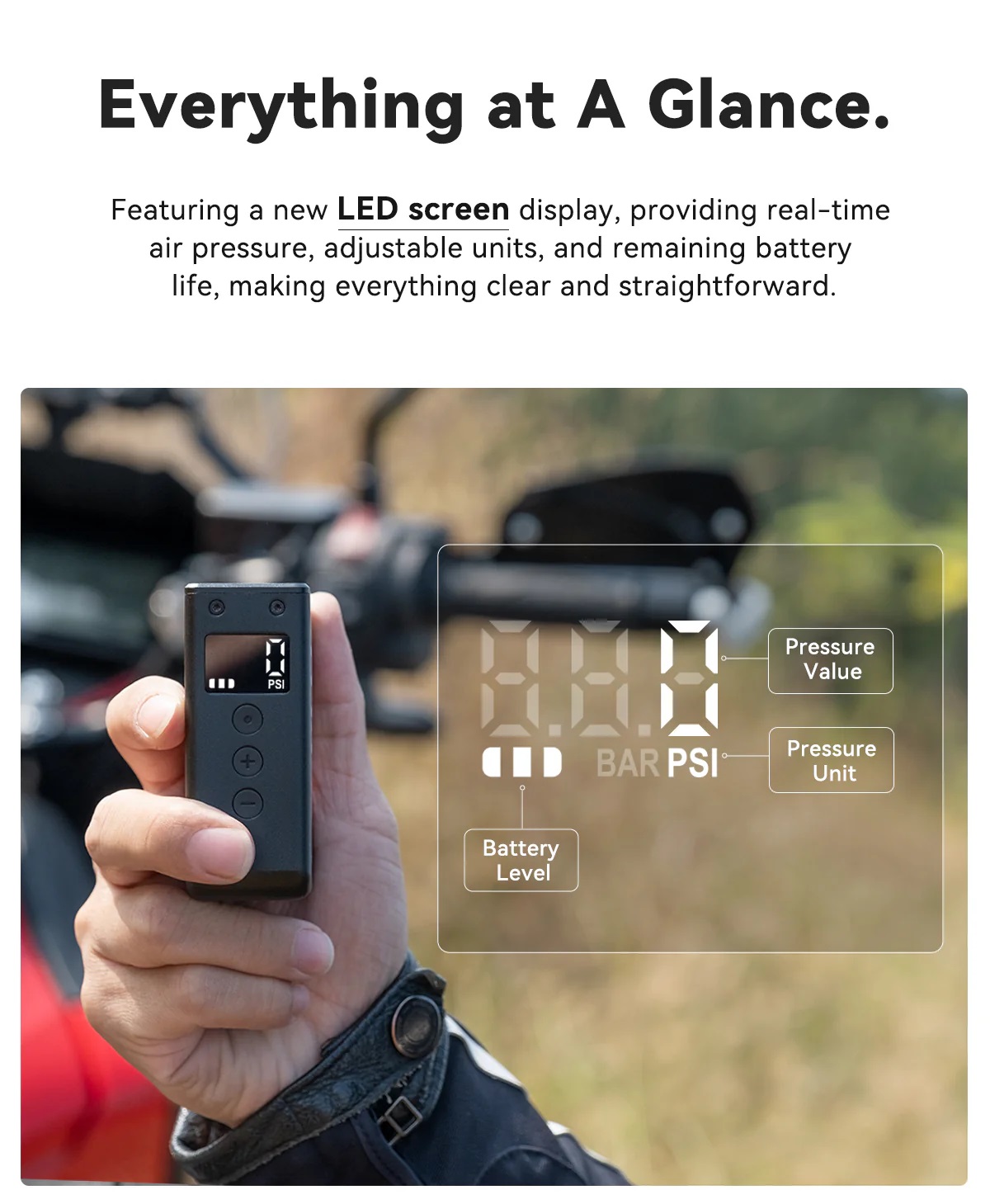 Geanuigkeit Luftdruckanzeige Display: ± 1 PSI (0.068 Bar)