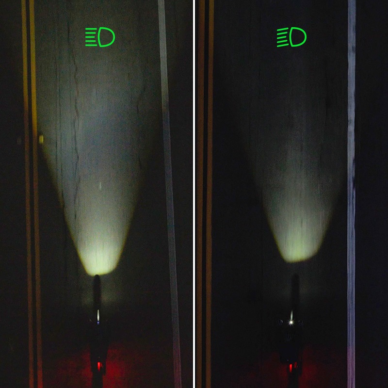 Abblendlicht für klare Sicht im Nahbereich; Fernlicht für eine breitere und grössere Ausleuchtung.