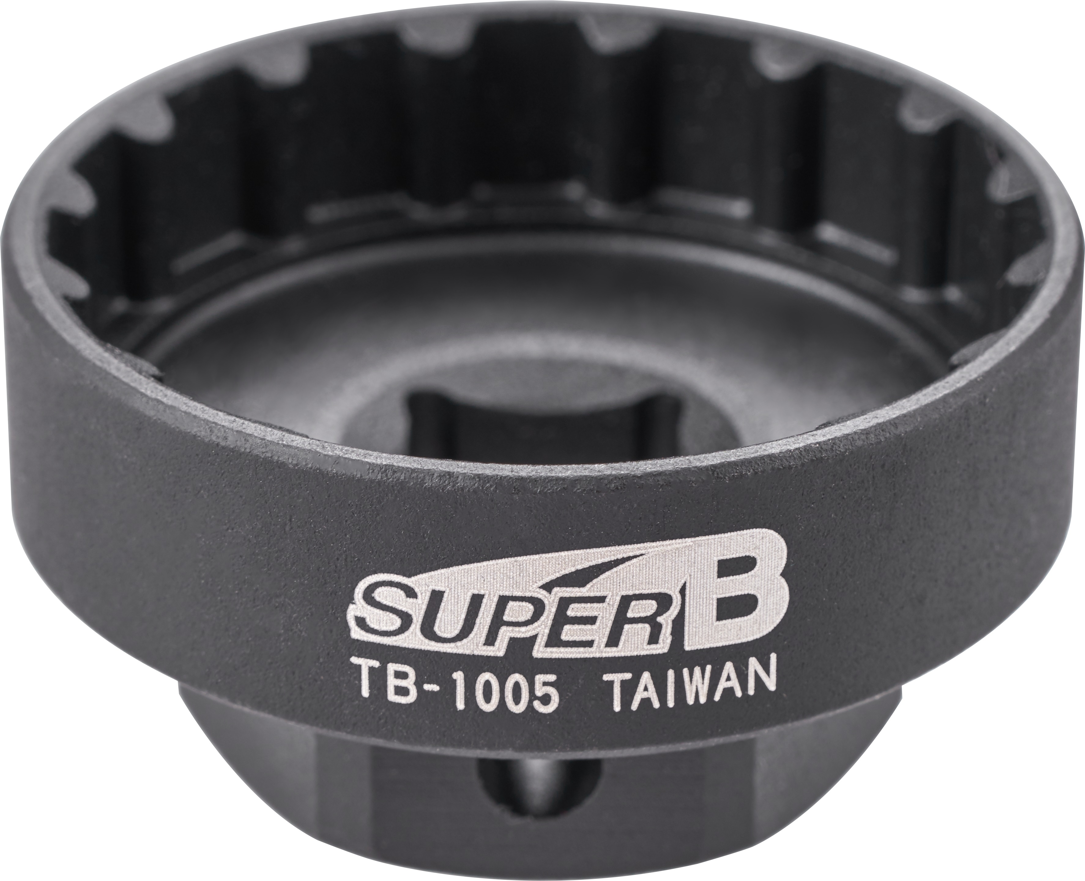 Das Super B TB-1005 Werkzeug kann sowohl zur Demontage und Montage von Tretlagerschalen sowie Bremsscheibenverschlussringen (16 Kerben) mit Aussenverzahnung verwendet werden. Nutzbar mit einem 1/2 Zoll Drehmomentschlüssel/Ratsche oder 32mm Gabelschlüssel.