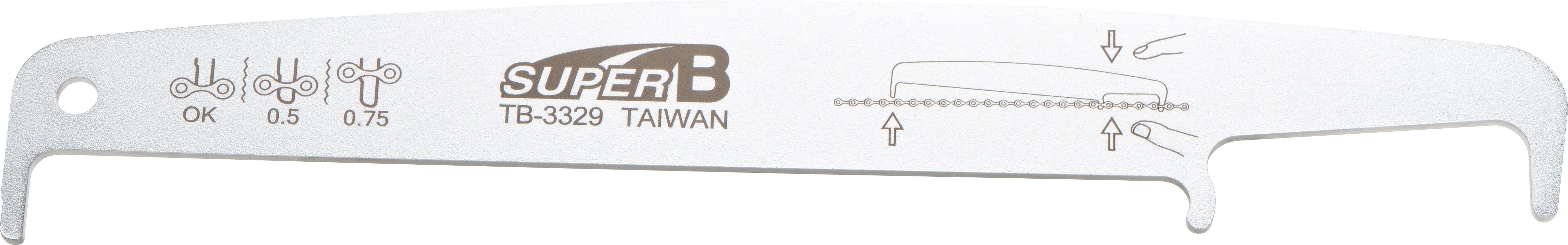 Die Super B TB-3329 Kettenmesslehre zeigt schnell und genau den Verschleiss der Fahrradkette an. Passend für Ketten mit 5 bis 13 Gängen, einschliesslich SRAM® T-Type, SRAM® Flattop™, und Shimano® XTR® 12-fach Ketten.